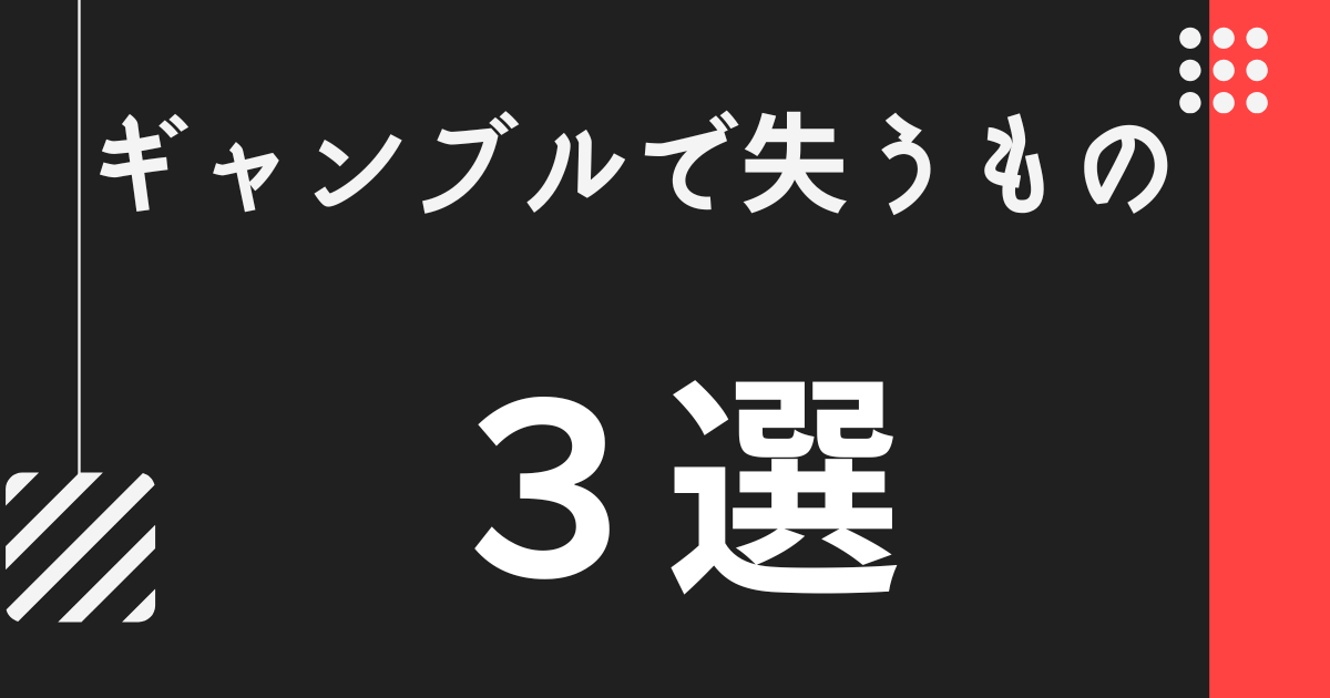 今回はギャンブルを続けることによって失うものを3つに絞って紹介していきます。なお僕の場合はパチンコ・パチスロにハマっていました。